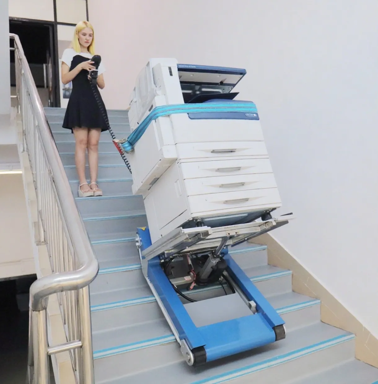 Com capacidade de até 420 kg, o escalador elétrico de escadas CT420S é a versão premium do 420 e permite que você carregue cargas para cima e para baixo por uma pessoa com facilidade e segurança. Ele possui um sistema de balanceamento adicional que permite um melhor equilíbrio da carga.