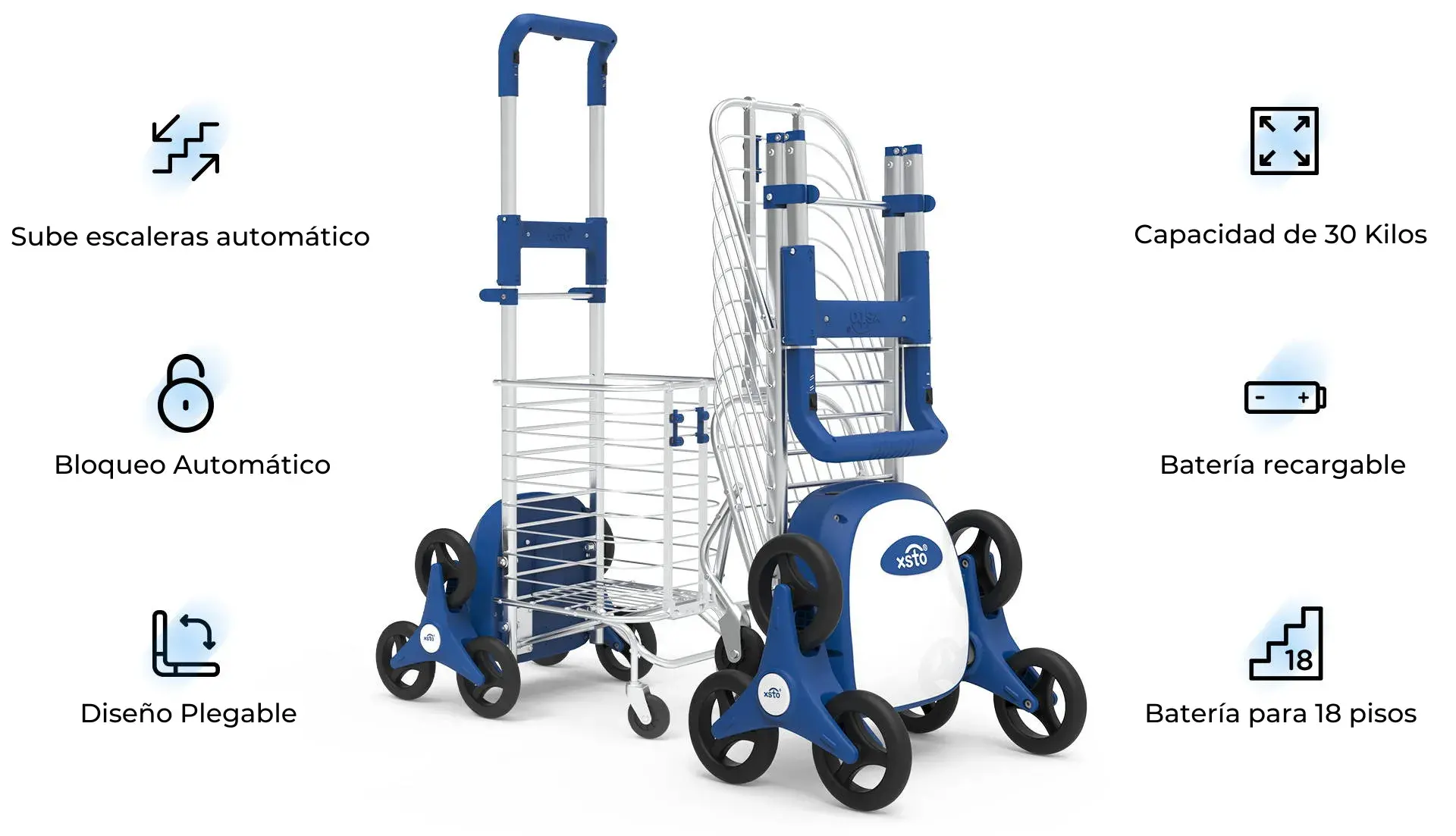 Sube escaleras automático | Diseño plegable | Capacidad hasta 30 kilos | Batería para 18 pisos | Para compras diarias, entregas y logística familiar